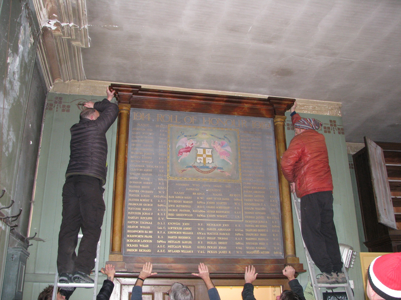 In late 2017 we finally obtained consent from the Oddfellows Society to take custodianship of Haworth’s Oddfellows Hall Great War memorial.