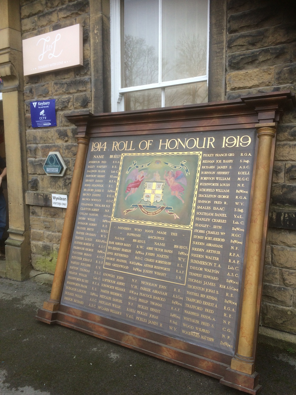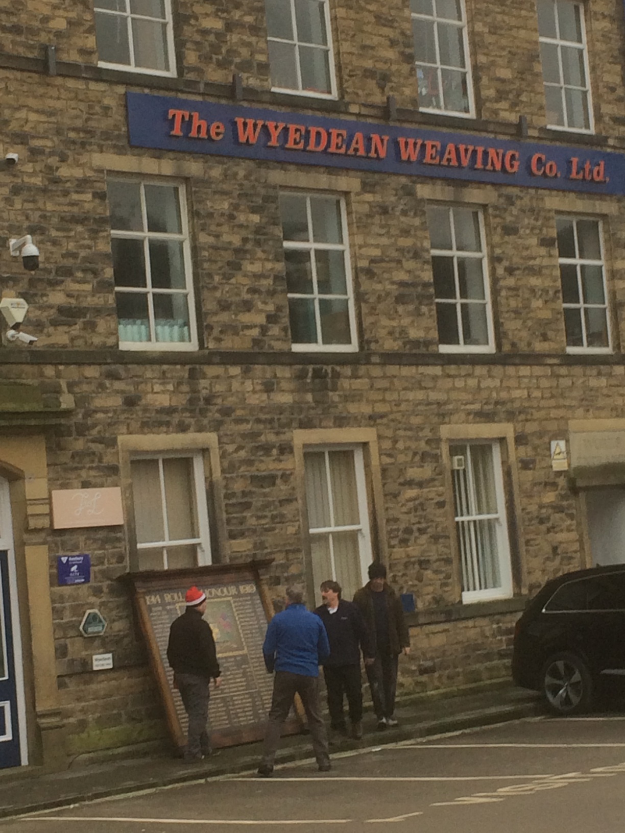 Initial conversations with Keighley’s Cliffe Castle Museum were somewhat guarded as they would have to consider the same problems with it and in any case we were hoping that we could find a home for it in Haworth, as most if not all of the men named would have been living in the village. We asked about on social media and were directed to speak with Robin Wright of Wyedean Weaving who said they were very interested in giving this memorial a home. They are located in the village and it’s highly likely that some of the men named were actually employed in their mill during the Great War, so it seemed an ideal solution if only we could get it to work…