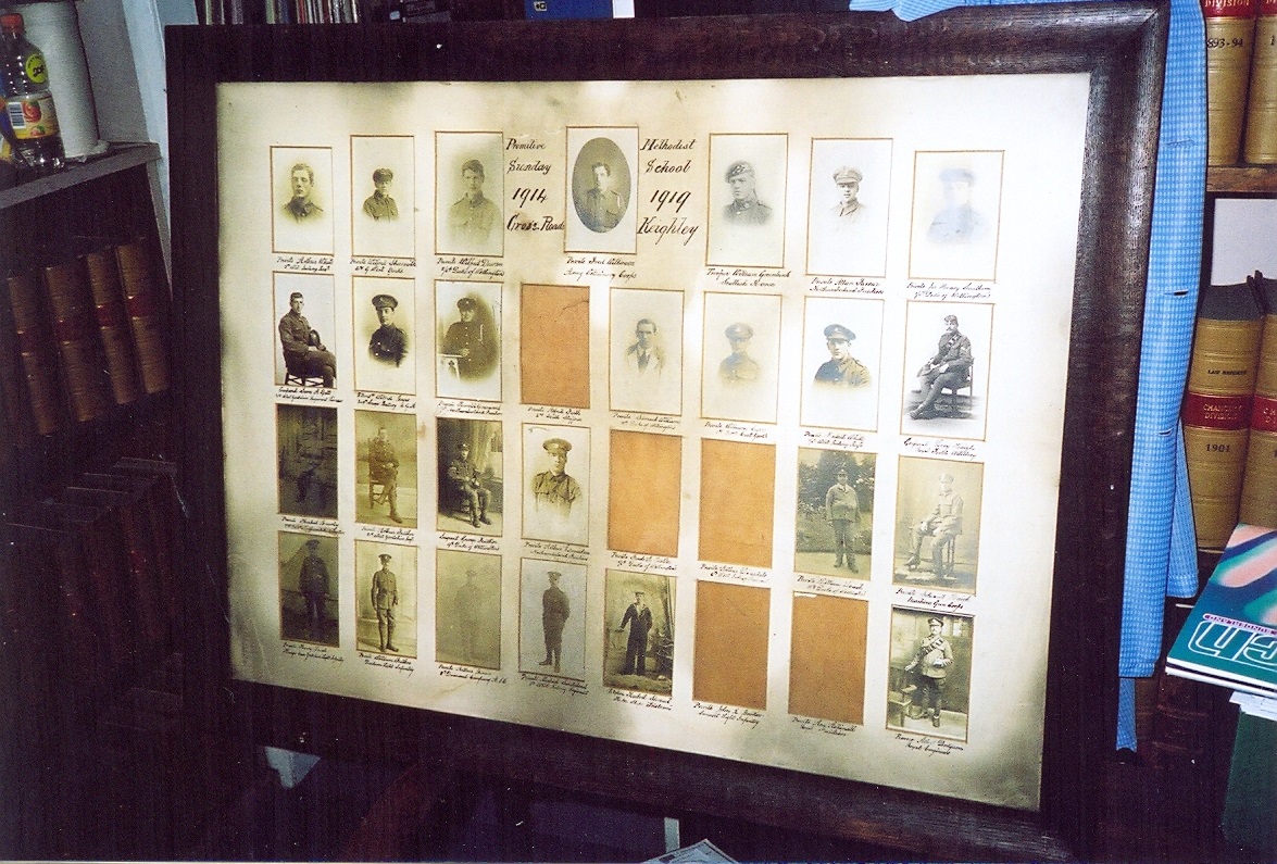 The original memorial was originally from a local Sunday School. It had been water damaged and then fell apart whilst in storage at Keighley Library and the surviving photographs were placed in an archive box at the library.