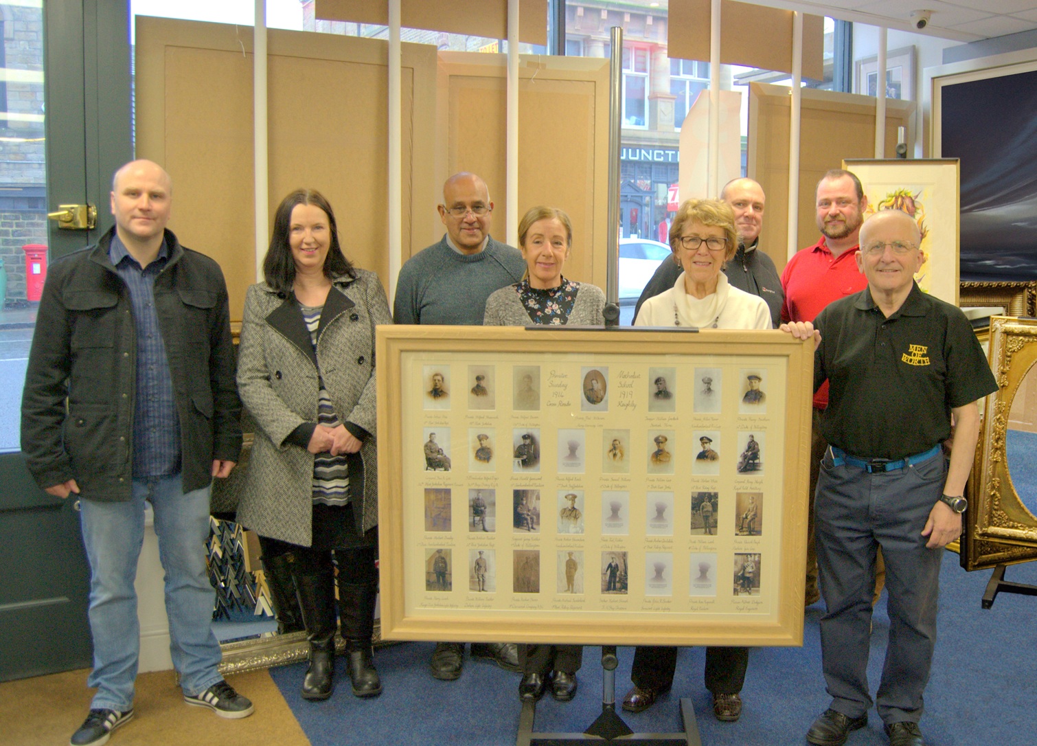 Thanks go to Andy Wade for scanning and printing off the new photographs, Gina Birdsall, Simon Roarke and Caroline Brown of Keighley Library; Manny and Julie from M & J Framing in Keighley; Sheila Butler for the calligraphy work; Robert Riley of R.J. Joinery who made and supplied the new oak frame and Tito Arana who arranged for it’s new home back at Cross Roads Park.