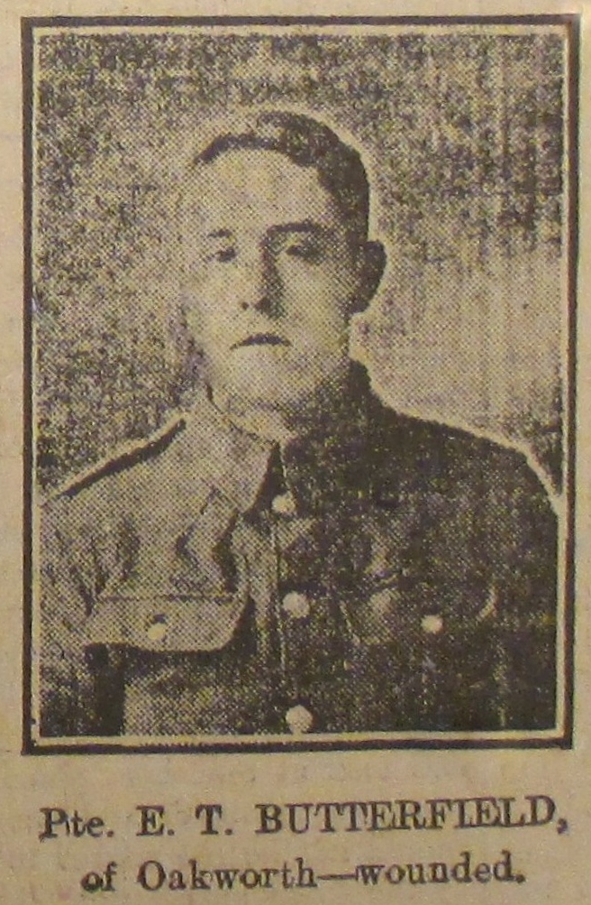 Private Ellis Taylor Butterfield, Yorkshire Regiment, of Honey Hole, Oakworth, and formerly of Stanbury, who has been missing since March 26, has written stating that he is a prisoner of war in Saxony.