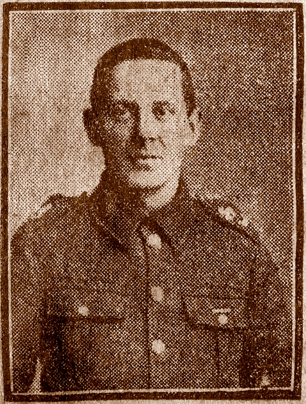 A newspaper quality photo of a soldier in uniform. Head and shoulders portrait.