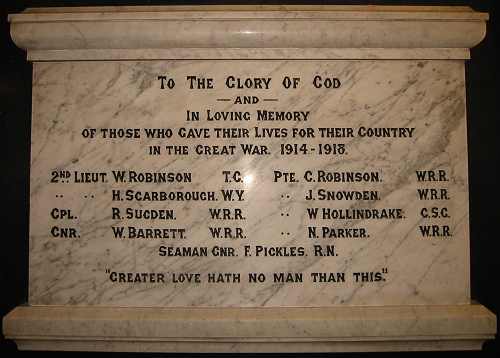 He is also named on the main Haworth War Memorial as Willie Hollingdrake and on the Haworth Roll of Honour board at St. Michael and All Angel’s Church as W. Hollindrake, and on the Haworth Baptist Church war memorial as Pte. W Hollindrake C.S.G.